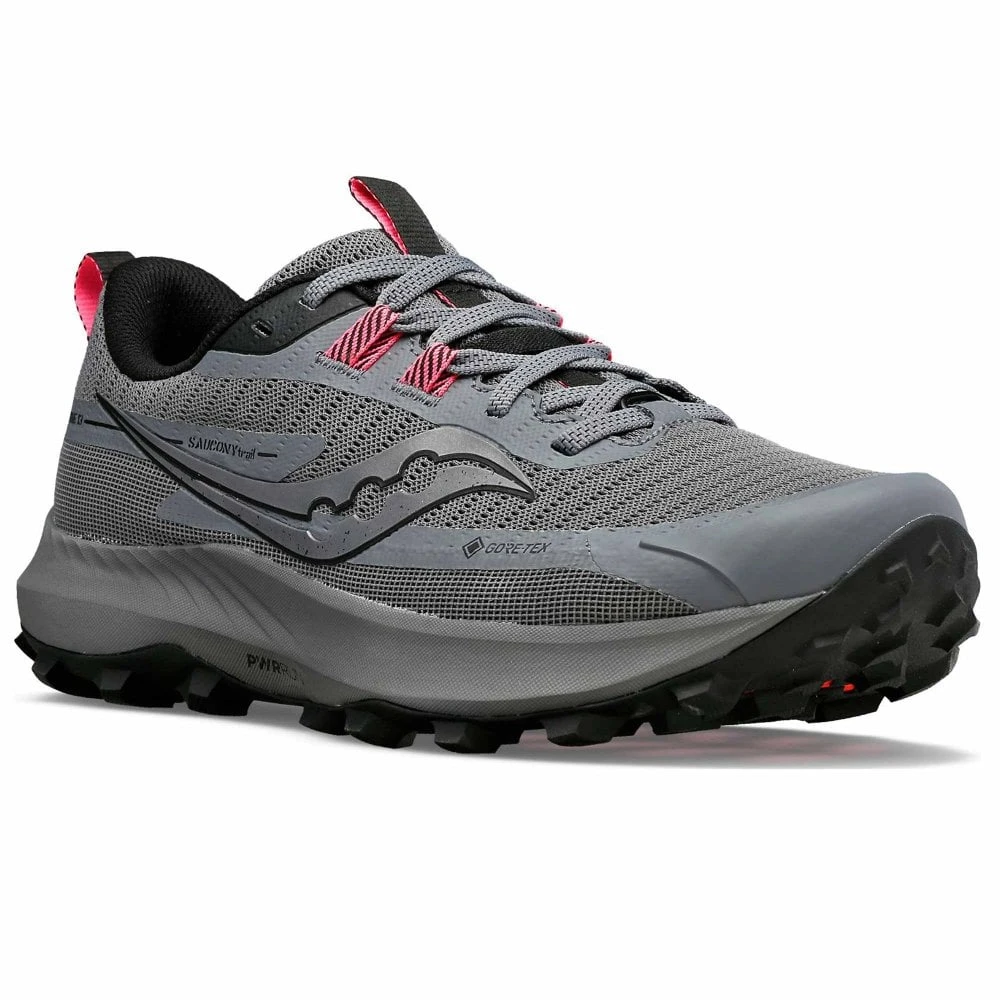 “Forecast calls for good speed. For those that live on the edge. The wet weather-ready Peregrine 13 GTX holds nothing back for the ultimate off-road experience. Built with waterproof GORE-TEX® and tough grip underfoot, it’s everything you need to go farther, faster.”